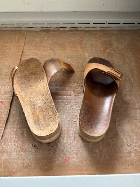 Récemment, une patiente atteinte d’aponévrosite plantaire nous a confié ses chaussures ouvertes de marque allemande, dont les semelles anatomiques standards ne lui apportaient pas un confort suffisant à domicile. Ayant déjà des semelles orthopédiques sur mesure, elle souhaitait bénéficier du même confort dans ses chaussures d’intérieur.