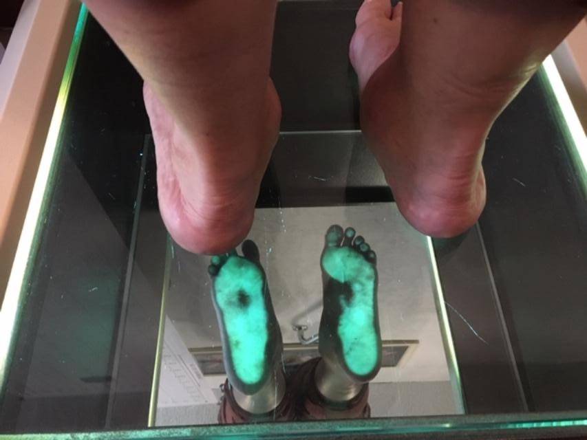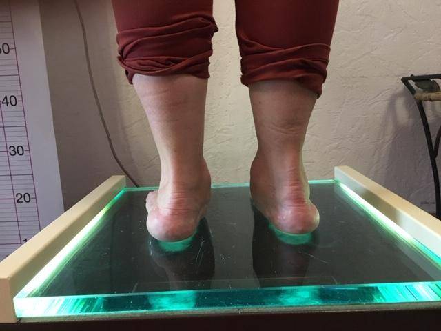 Lors de la livraison les semelles ont été adaptées au chaussant de la patiente et nous avons constaté une meilleure statique des deux pieds.