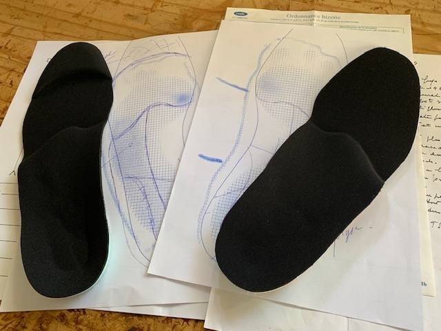 La paire d’orthèses plantaires que nous vous présentons ici a été fabriquée sur mesure dans notre atelier de podologie qui se trouve à Allauch, dans la région marseillaise.