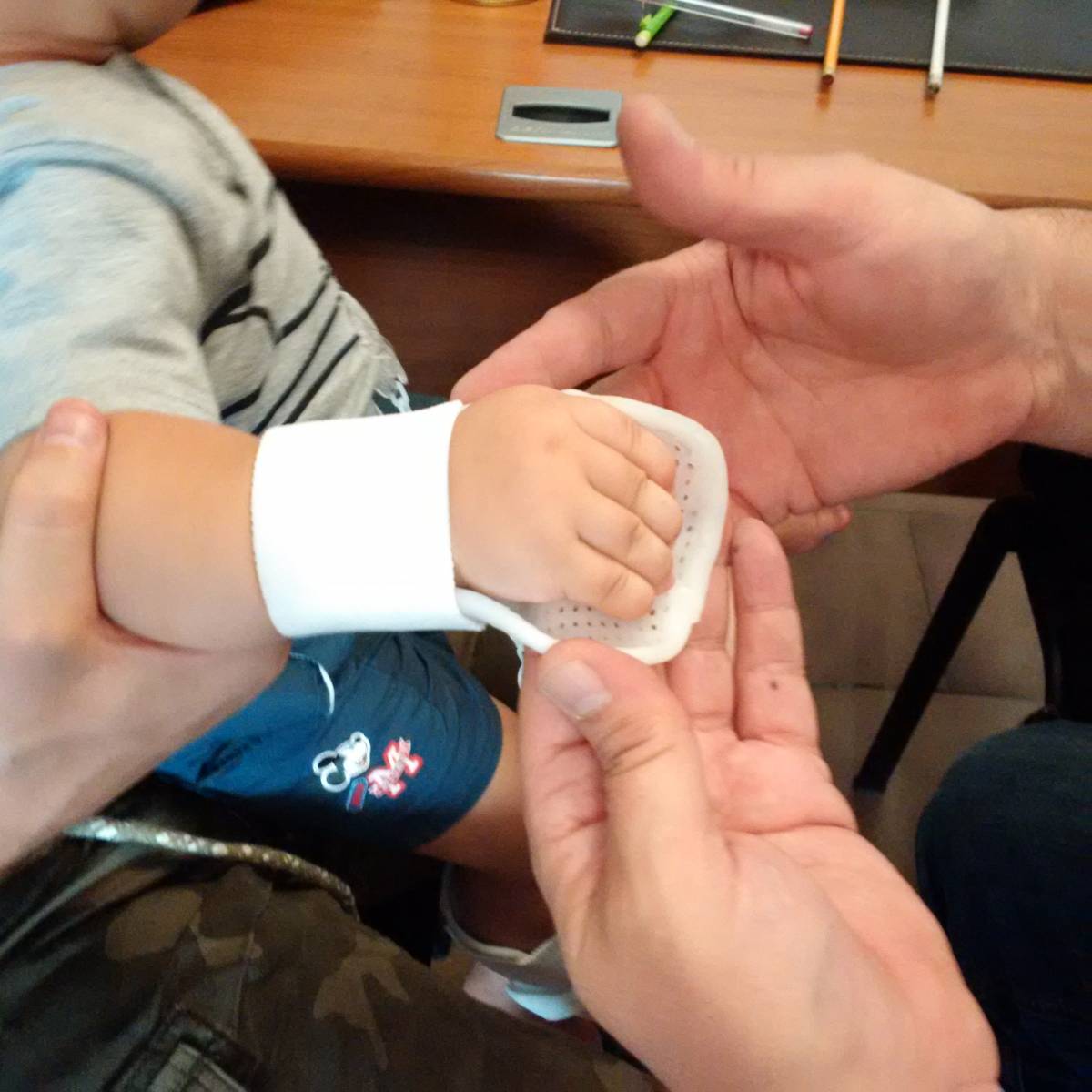 Prescrite par le médecin traitant, l’orthèse thermoformée réalisée dans notre cabinet a été moulée directement sur la main de l’enfant.