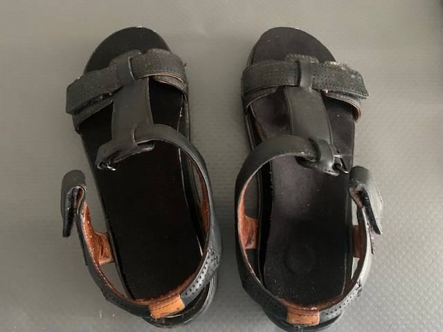 Cette dame souhaite pouvoir porter ses semelles dans la paire de chaussures ouvertes quelle nous a confiée.